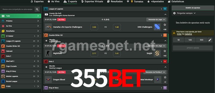 O 355bet oferece uma grande seleção de opções de apostas em e-sports com probabilidades competitivas